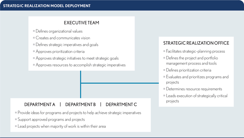 A sound strategy without execution produces no value and results in significant opportunity cost. To ensure strong and measurable progress on strategic imperatives and goals, organizations should consider establishing a Strategic Realization Office (SRO).